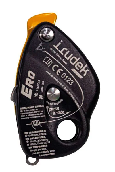 BLOQUEADOR DE PALANCA CON AUTORETORNO PARA DESCENSOS EN CUERDA IRUDEK ERO