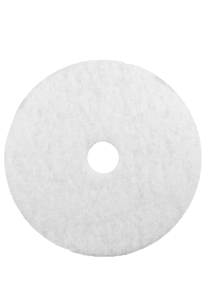 Disco Blanco para Limpieza y Pulido de Pisos 4100 es un disco de pulido de pisos (Buffing) construido a base de fibras sintéticas de polyester no tejidas de alta calidad. Las fibras están unidas a la estructura del disco con un sistema de resina duradero que impregna todo el disco. Su diseño único y construcción duradera hacen que estos discos sean el estándar de la industria para un rendimiento constante y una vida útil prolongada. • Diseñado para usarse para la limpieza por aspersión o pulido en seco de pisos de superficie dura. • Para uso en fregadoras automáticas estándar de baja velocidad y máquinas rotativas para pisos (175 – 600 rpm).