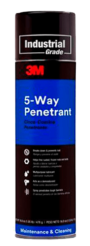 El 3M™ Lubricante Penetrante 5 Way es un aceite ligero en aerosol, libre de siliconas, con remarcables propiedades como penetrante, lubricante, limpiador, desplazador de humedad e inhibidor de oxidación y corrosión. Trabaja sobre metales, plásticos, gomas y superficies pintadas.
